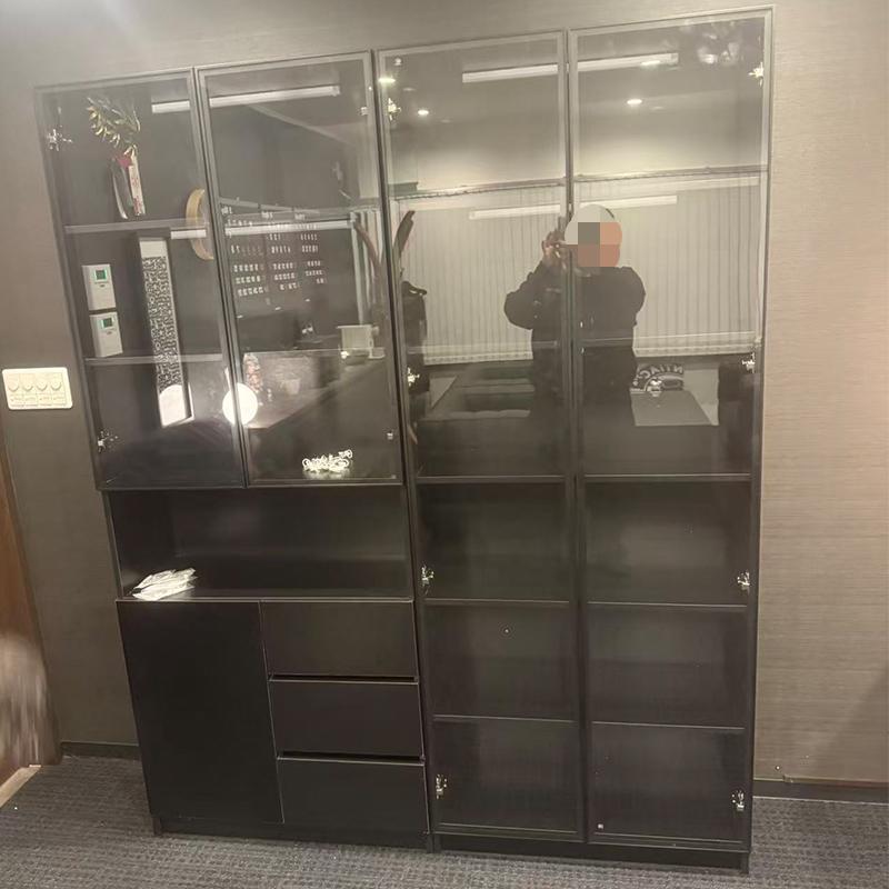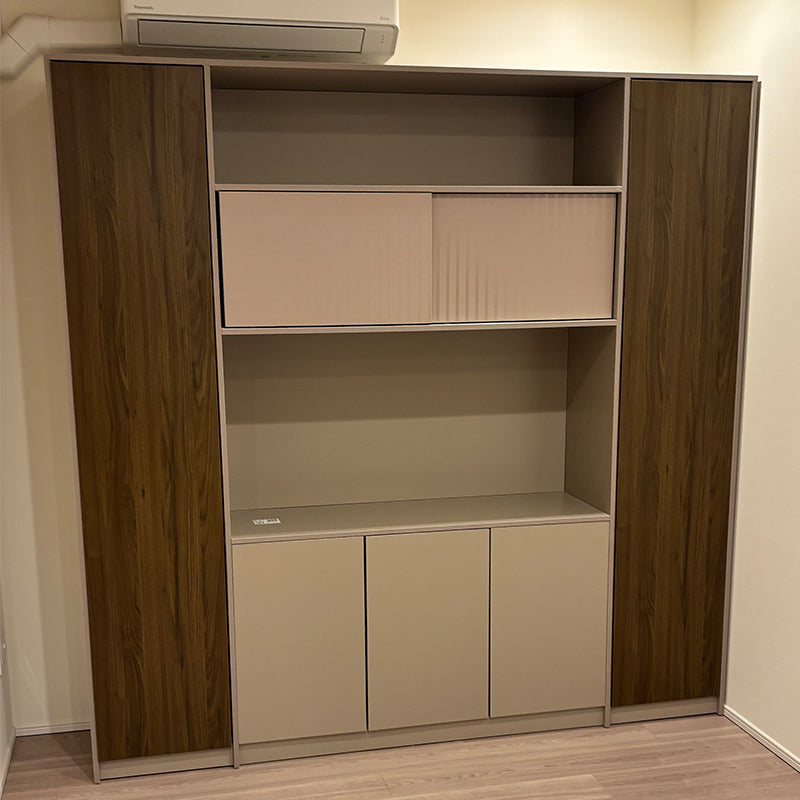 オフィスキャビネットは機能性だけでなく、美しさも兼ね備えています。重厚感のあるデザインは新しいオフィスにぴったりで、従業員たちも使うのを楽しみにしている様子が伺えました。お客様はこの空間で多くの会議や打ち合わせを行うことを想像し、期待が高まっていました。