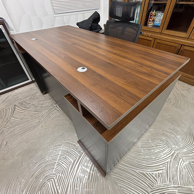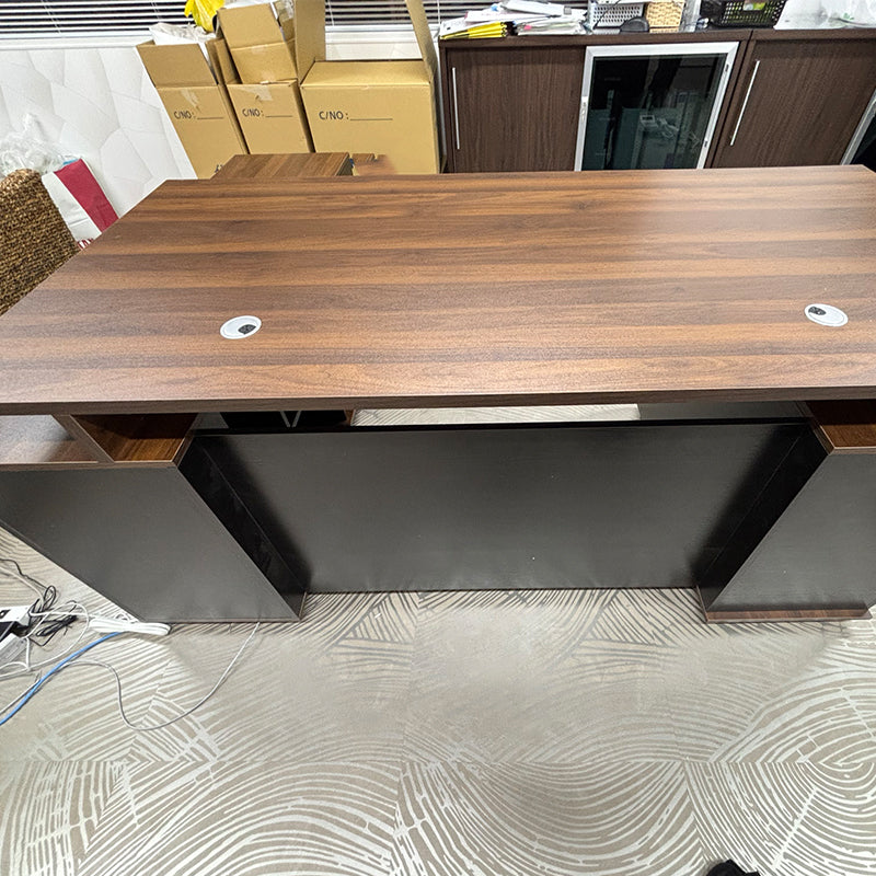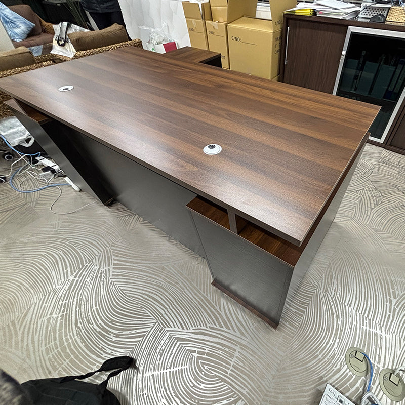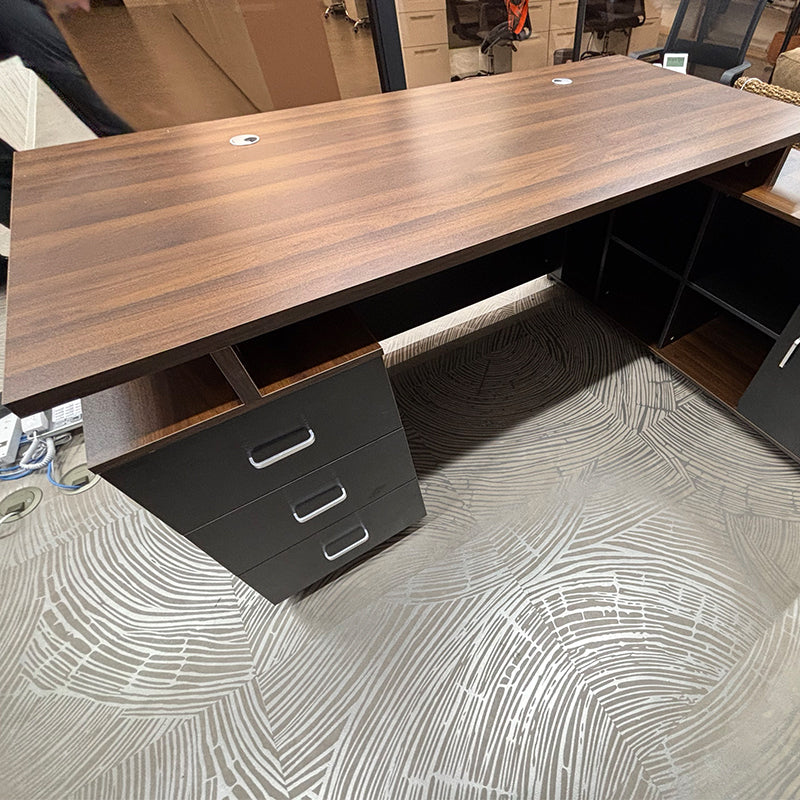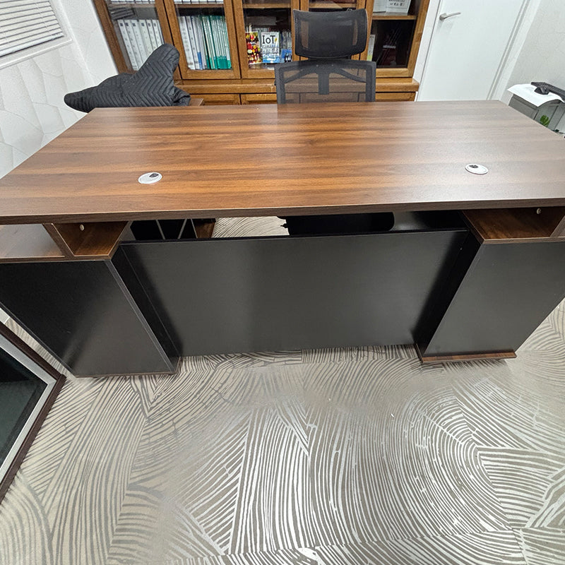 あるお客様より「木目調の役員デスクを探している」とのご要望をいただき、慎重に検討した結果、こちらの重厚感あふれるデザインの役員用デスクをご提案させていただきました。