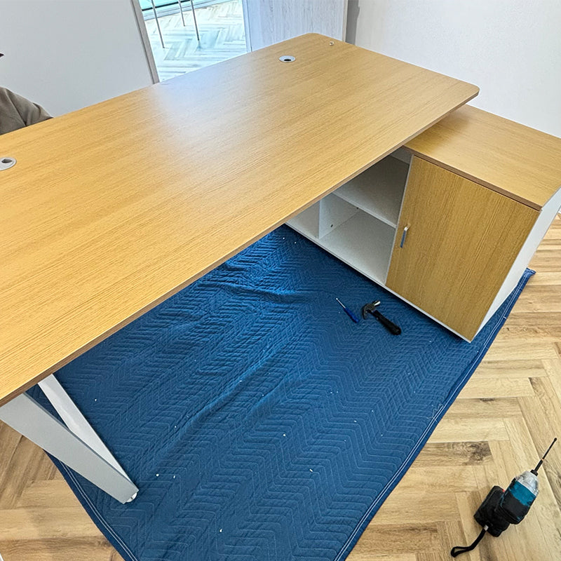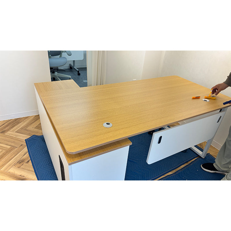 納品当日、組立作業員が現場を確認したところ、設置環境がやや狭く、若干の難易度が生じました。しかし最終的には最適な解決策を見出し、無事に役員デスクの組立を完了させることができました。