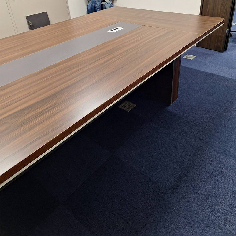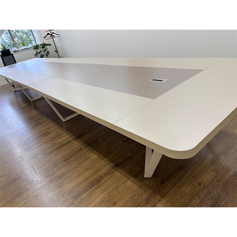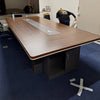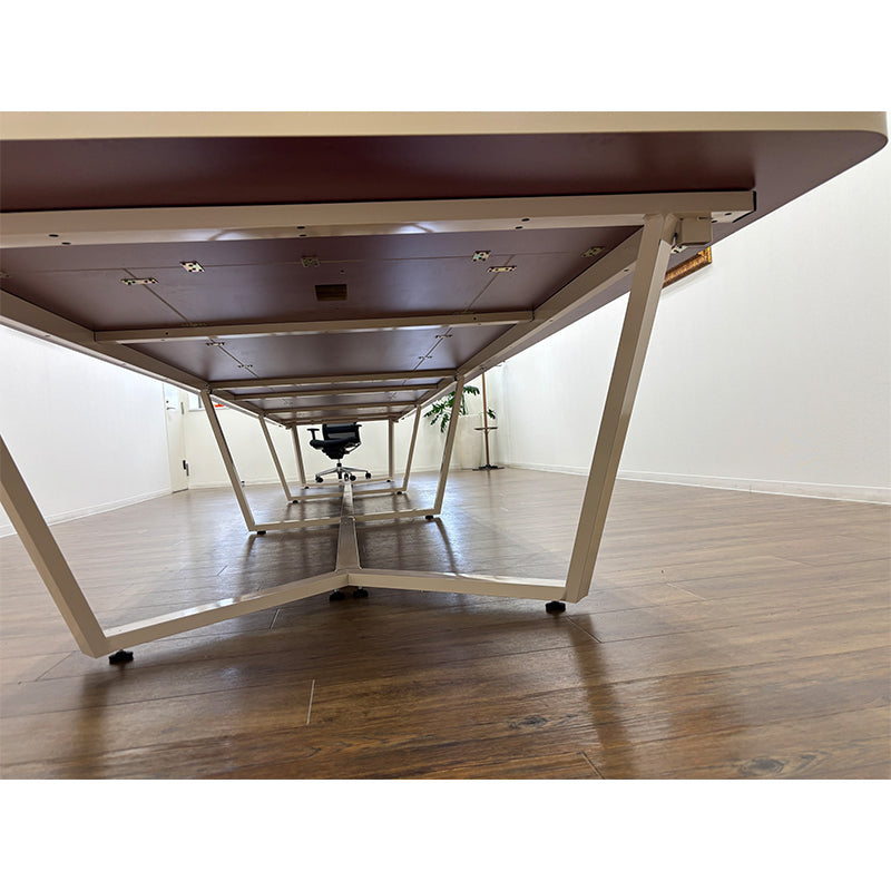 今回、お客様のご要望に応じて、会議テーブル(HYZ-N022)に特注の8本脚を設け、指定の色味を精密に再現いたしました。