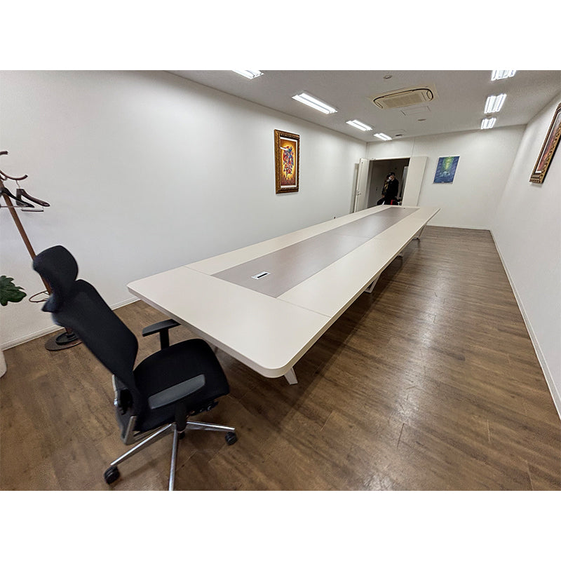 今回、お客様がわざわざ当社の「Yeddkin」シリーズのこのテーブルをお求めになりました。このテーブルは元々お客様のご希望の色ではなかったのですが、私たちが丁寧にご提案させていただき、テーブル全面(天板から脚部まで)のお色をカスタマイズし、お客様の会社の環境に完璧に調和する仕様に致しました。さらに、複雑な設置作業にも対応できるよう、設置サービスも特別にカスタマイズさせていただきました。