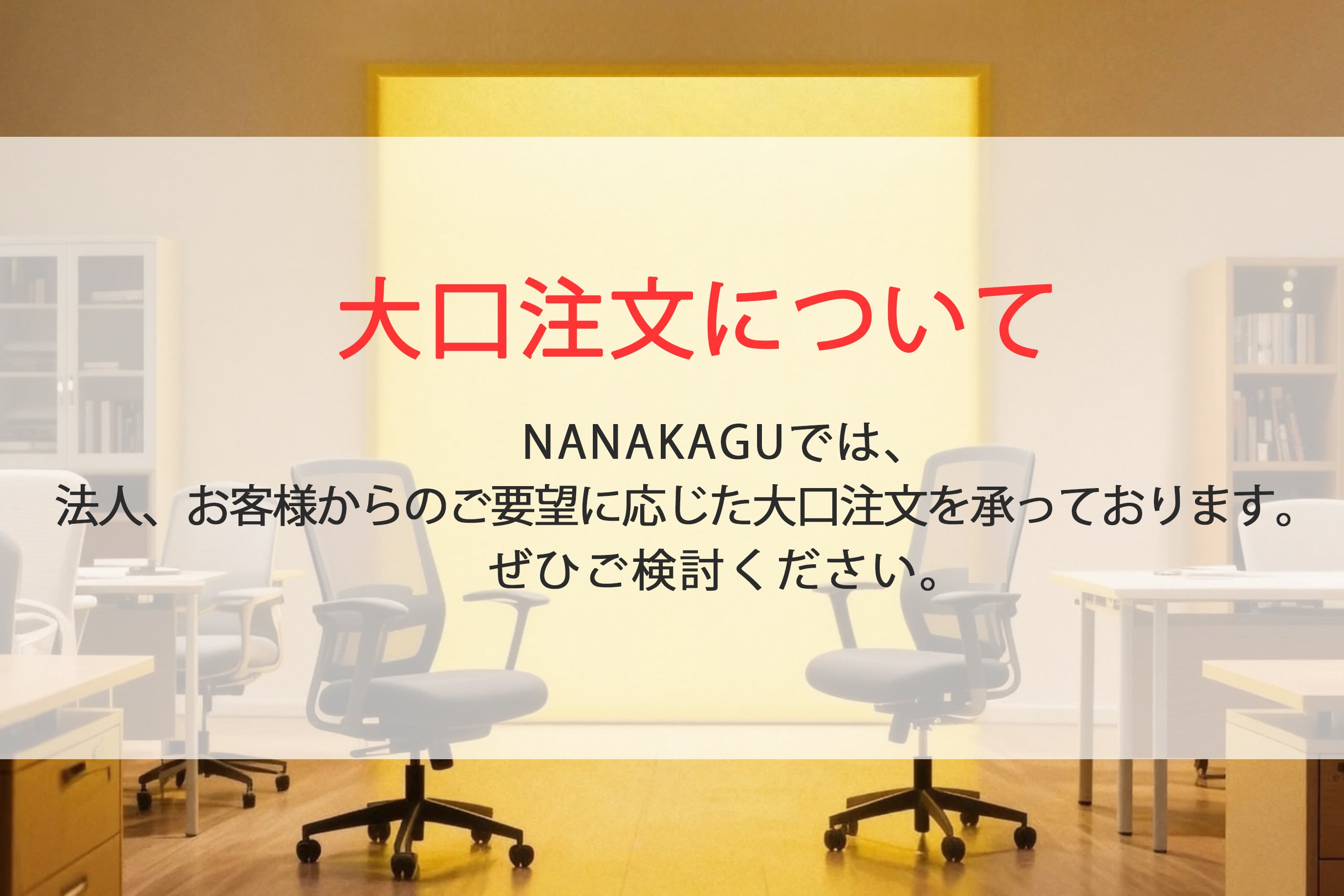 オフィスの拡張・リニューアル・移転に必要な家具を一括購入される法人様へ、大口注文・おまとめ買いのお見積もりを承ります。