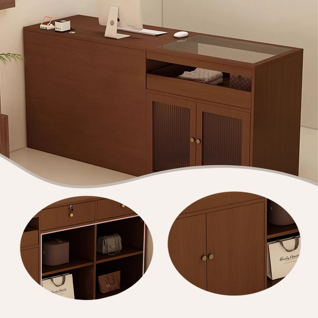 受付カウンター 大容量収納 配線穴 ガラスディスプレイ 組立必要 多色選択可能 JDQT-N066